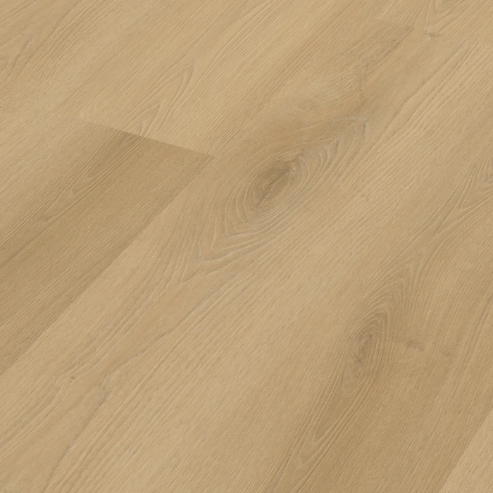 De zachte bruine eikenkleur en subtiele noesten zorgen voor een natuurlijke vloerlook. Tegelijk geeft de voelbare houtstructuur de vloer een realistische uitstraling. De matte toplaag zorgt voor een rustige en elegante afwerking zonder storende glans. Hierdoor vormt deze vloer een warme en stabiele basis voor elk interieur.