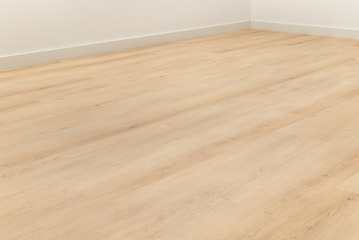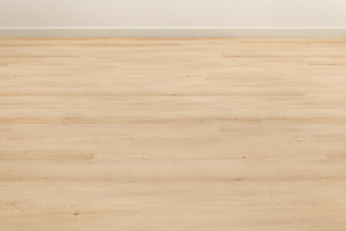 De brede planken van 121,9 × 22,86 cm creëren een open, natuurlijke uitstraling. De frisse crème-eiken kleur brengt rust en warmte in elke ruimte. Dankzij de voelbare houtstructuur en de ultramatte MEGAMAT-afwerking oogt de vloer als echt eikenhout – zonder glans of spiegeling.
