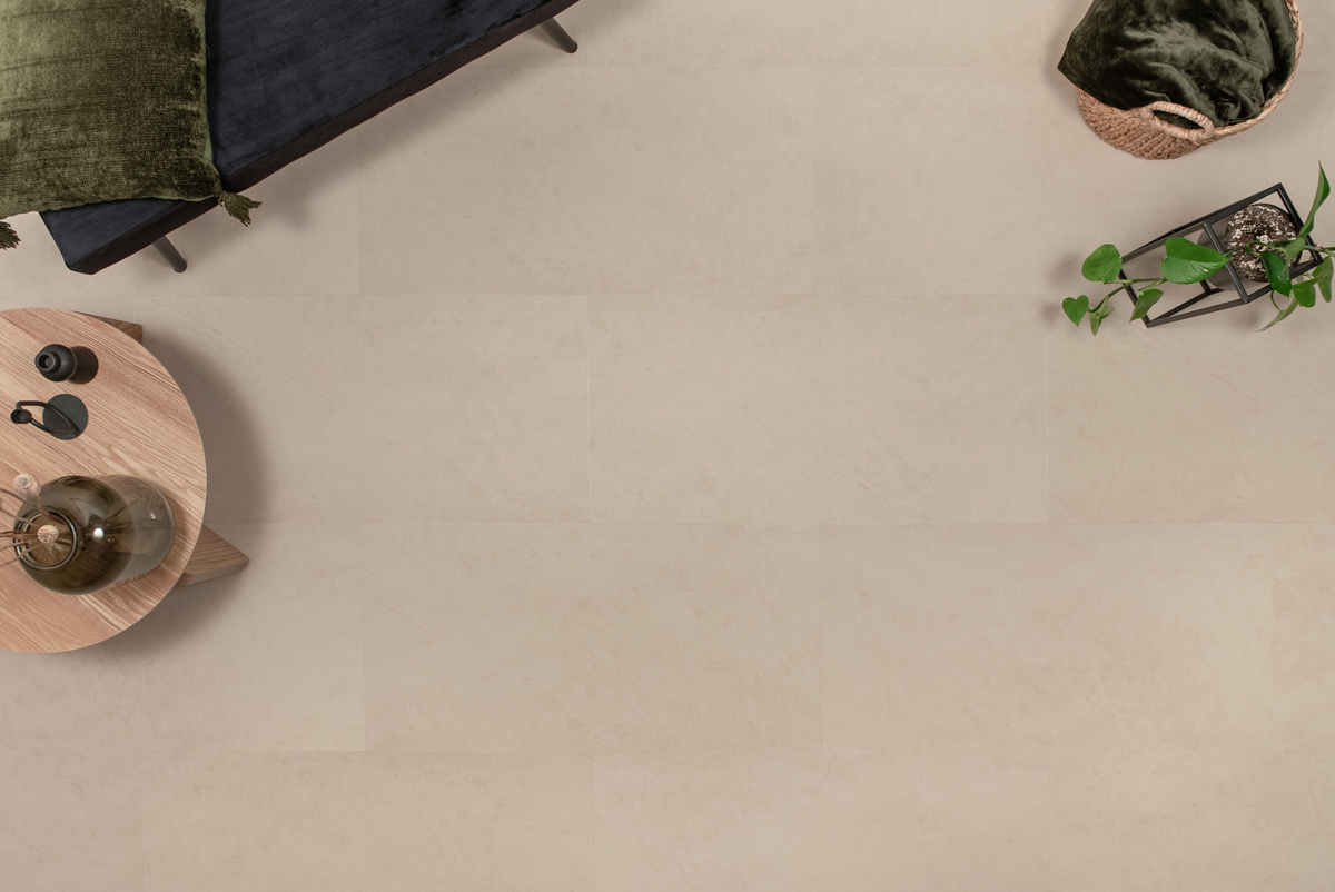 Bestel gemakkelijk de Floer Tegel Click PVC – Betonlook Beige bij Picobello Vloeren.