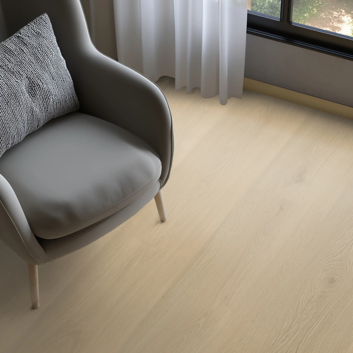 De voelbare houtstructuur versterkt het natuurlijke karakter van de vloer.